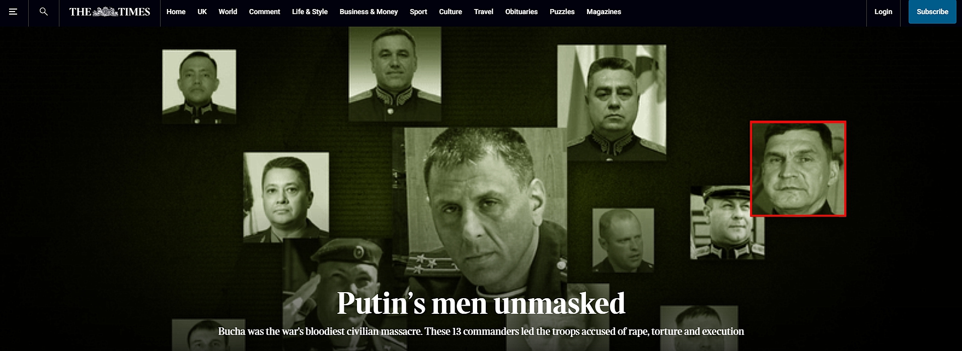 Британське видання The Sunday Times опублікувало інформацію про 13 російських командирів, яких звинувачують у воєнних злочинах у Бучі на початку 2022 року.
