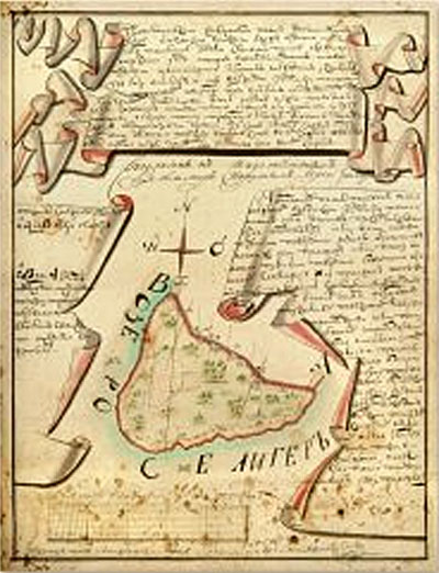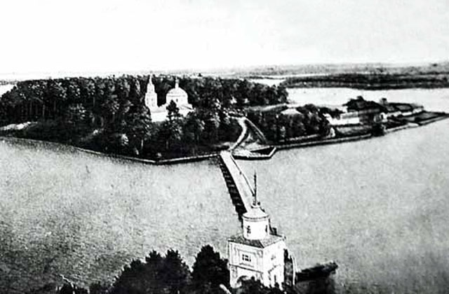 В 1766 году здесь была построена каменная часовня, перестроенная в 1777-1781 годах в каменную двухэтажную четырехугольную пятиглавую церковь. В 1939 году она была полностью разрушена, а кирпичи пошли на дамбу, соединяющую остров с большой землёй.