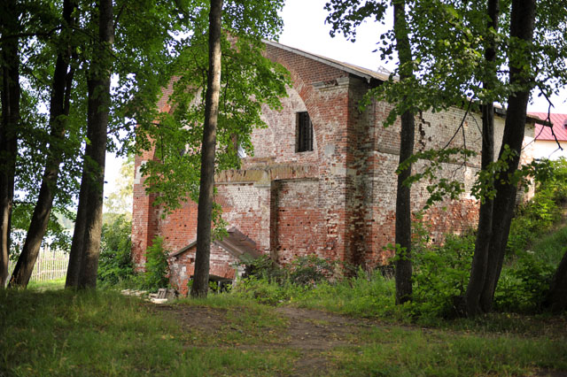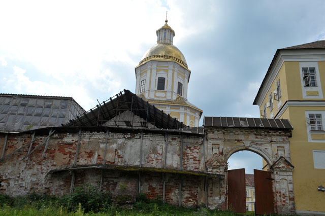– с северной стороны – двухэтажная бывшая трапезная палата. Первый этаж – самая старая из сохранившихся построек монастыря (1669-1672), второй этаж был надстроен в 1758 и 1804 годах, где размещалась монастырская больница. Корпус в настоящее время находится на реставрации.