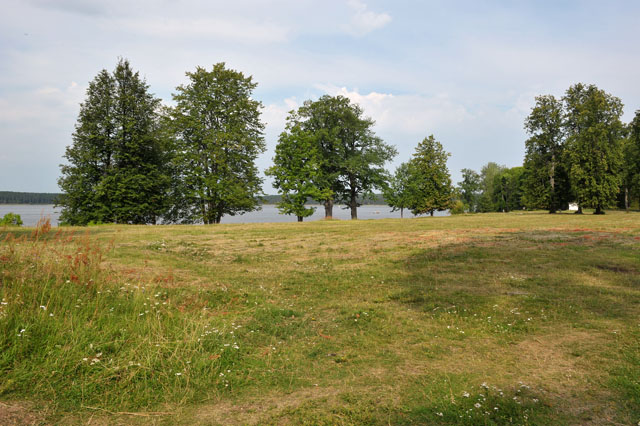 Напротив фруктового сада и до самого западного берега острова находится тенистая поляна (где еще в начале прошлого века шумела густая роща), которая является излюбленным местом для отдыха посетителей обители и