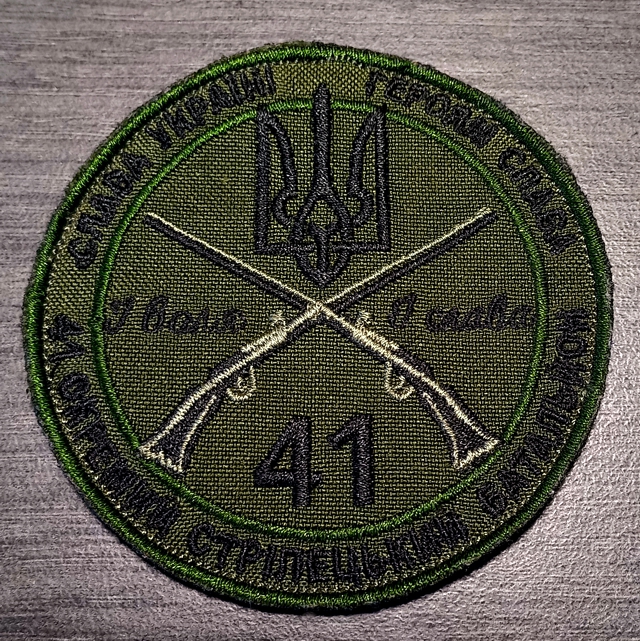 Вчора зустрівся із командиром 41-го окремого стрілецького батальйону. Довго розмовляли про ратну службу. Зараз командир проходить реабілітацію після операції, але незабаром знову прямує до свого батальйону. Насамкінець Вадим подарував мені шеврон батальйону. Це перша версія такого знаку розрізнення, сьогодні вже інший шеврон, який сподіваюся скоро показати.